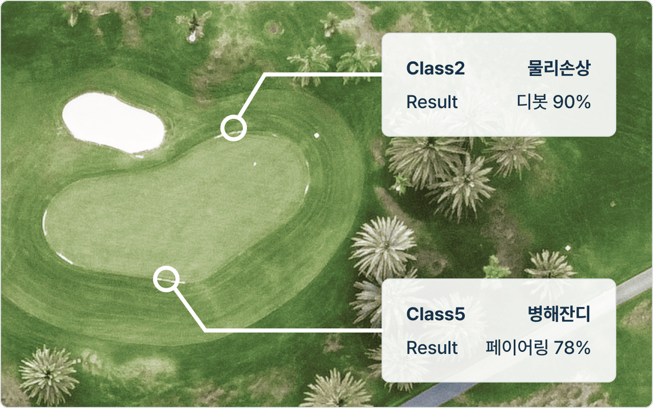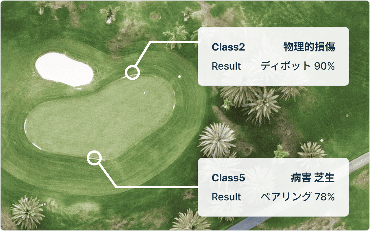 芝の色の変化、テクスチャパターン、季節ごとの気候データを組み合わせ、人の目では判別しにくい病斑疑いエリアをピクセル単位で正確に特定します。AIが病斑の初期兆候を早期に検知し、大規模な拡散前に最小限の薬剤で対応できます。