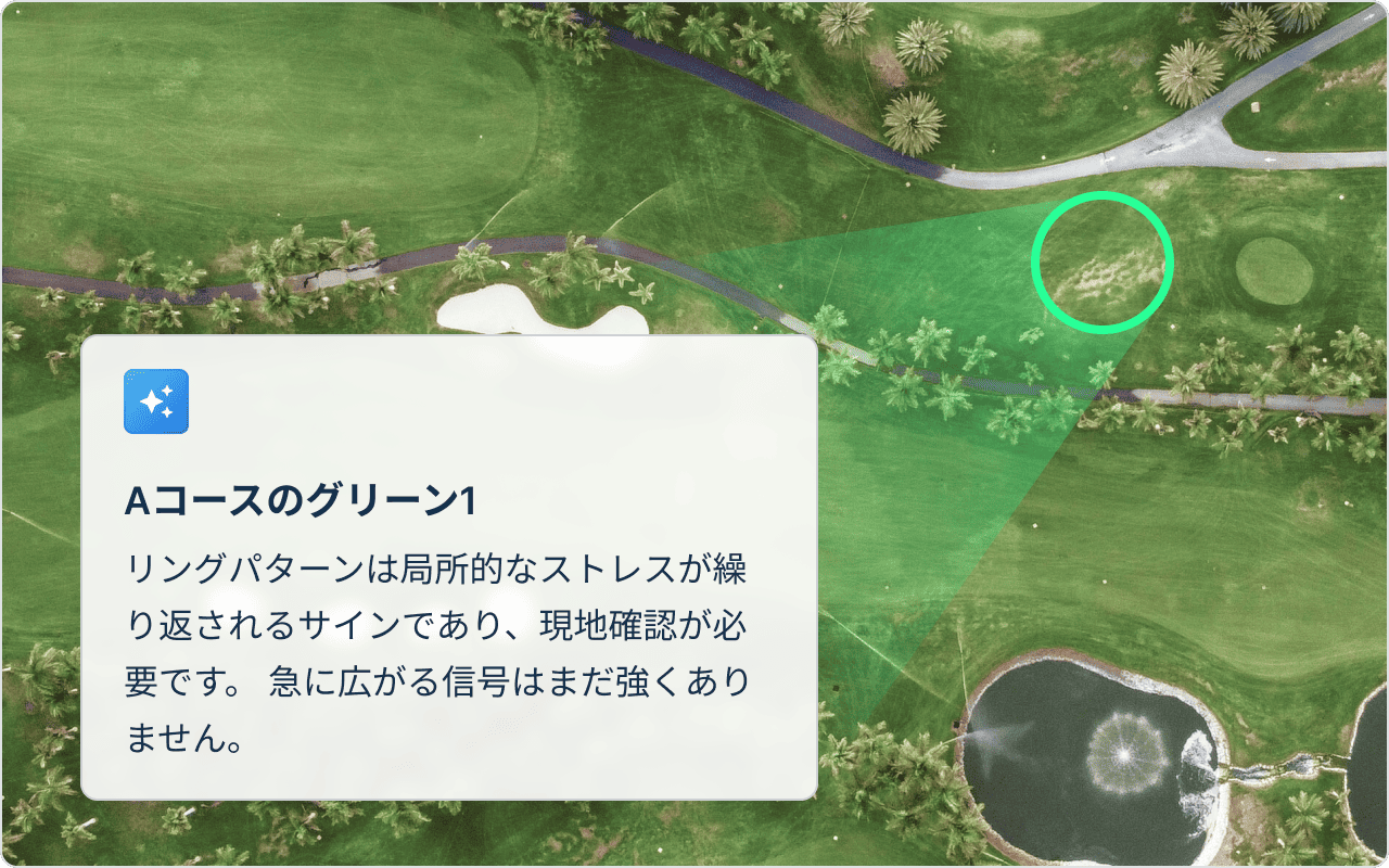 病斑検知アルゴリズムとAIが芝状態を診断します。
