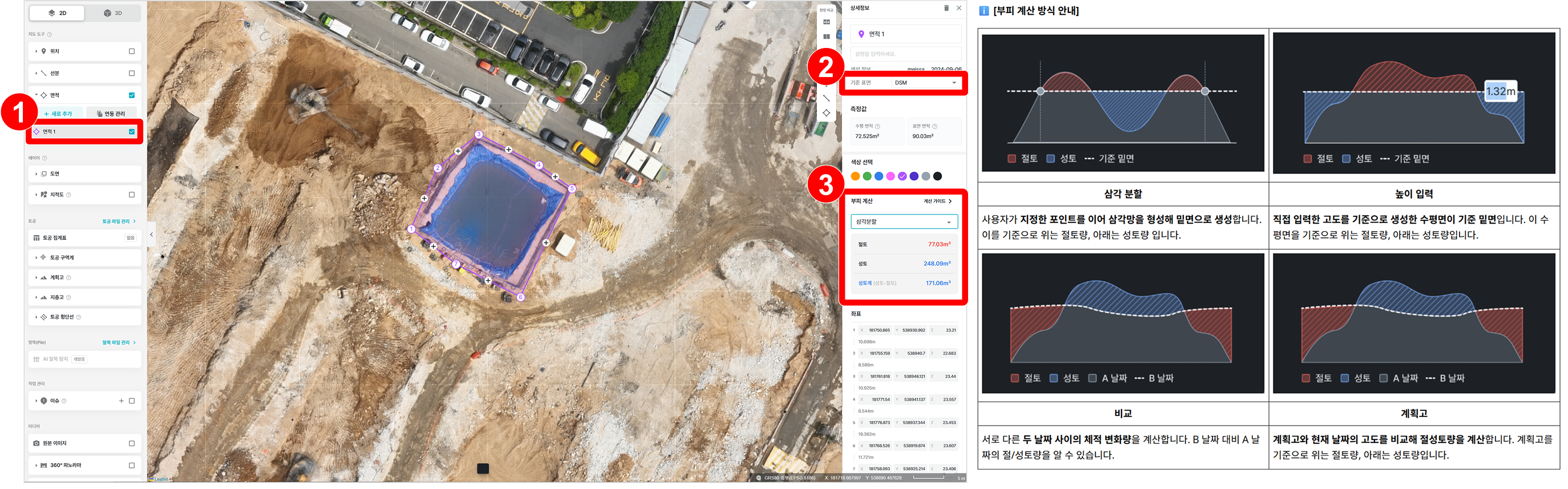 2. 현장 여건을 고려한 수량 산출 : 높이 고저차 확인 가능함에 따라 현장 실수량 산출 가능