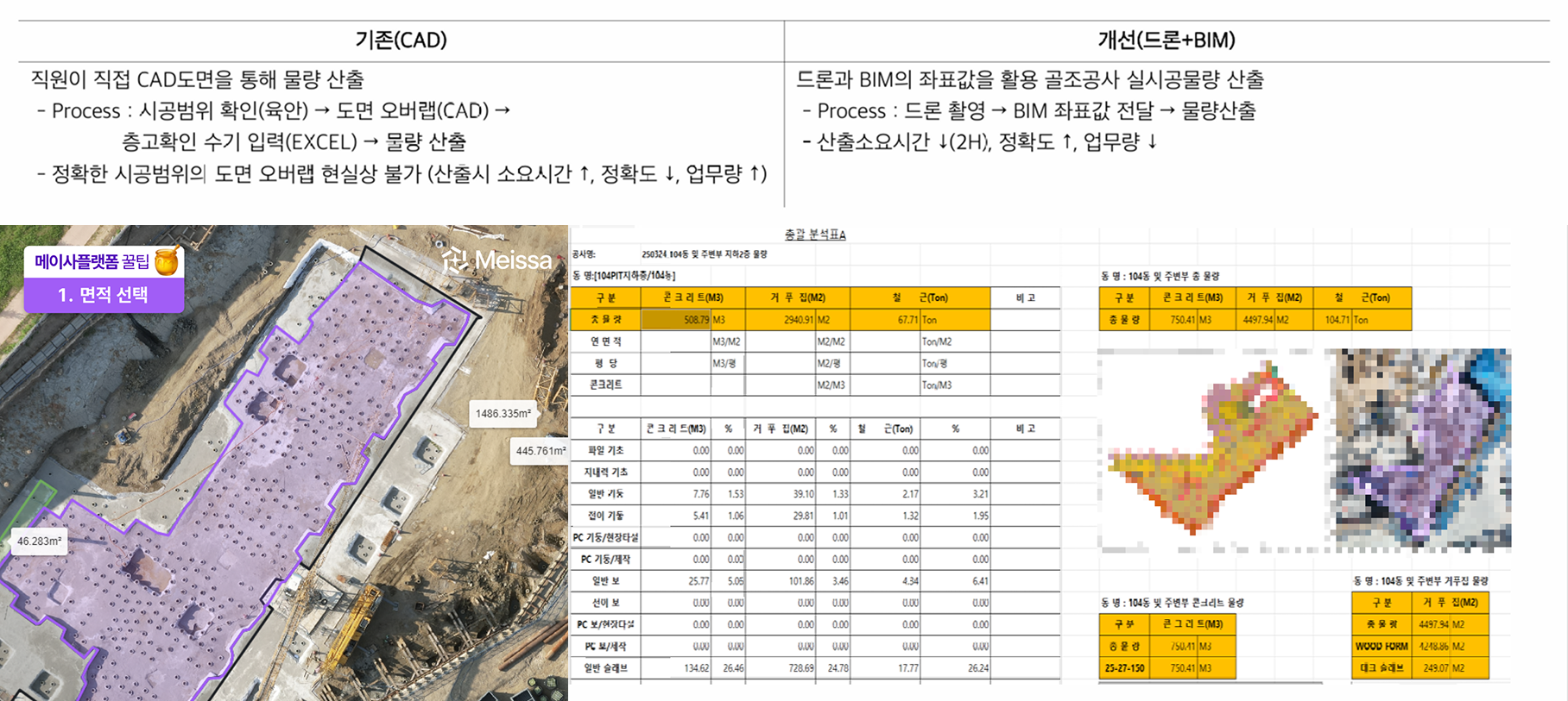 2.  드론 & BIM 좌표값을 활용 실시공량 산출(물량기반의 공정관리 기대)