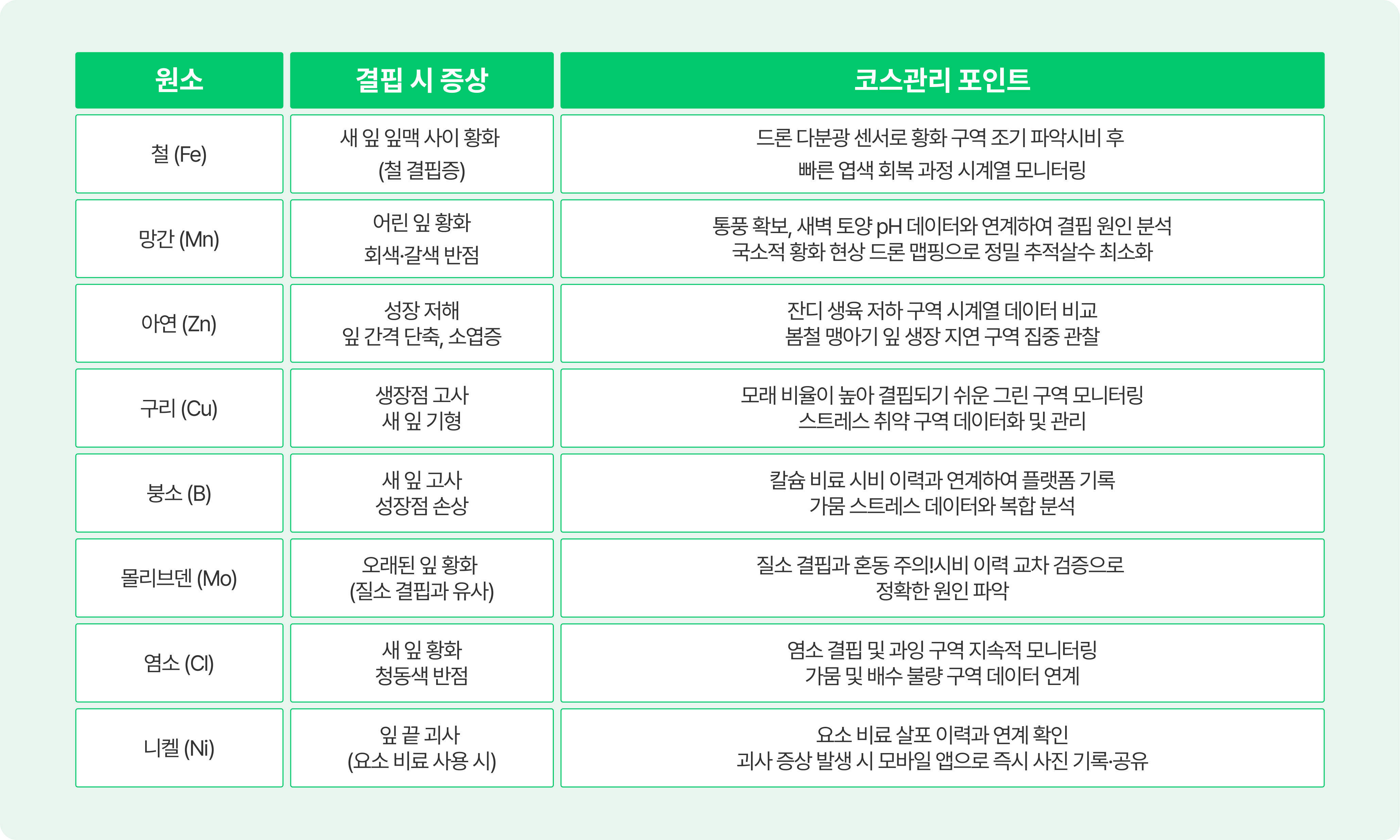 영양 결핍은 자칫 병해충 피해로 오인되어 불필요한 방제 작업으로 이어질 수 있습니다. 팀장님들께서 현장에서 직관적으로 활용하시는 3가지 구분 기준을 데이터의 관점에서 짚어보았습니다.