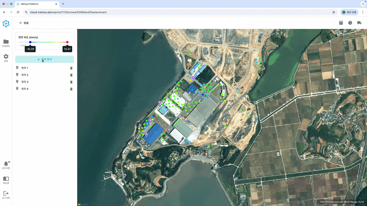 SAR 위성 영상을 활용하여 지상 실측 없이도 주요 인프라가 위치한 간척지·연약지반 등 위험 지역의 지반 침하 가능성을 추정할 수 있습니다.